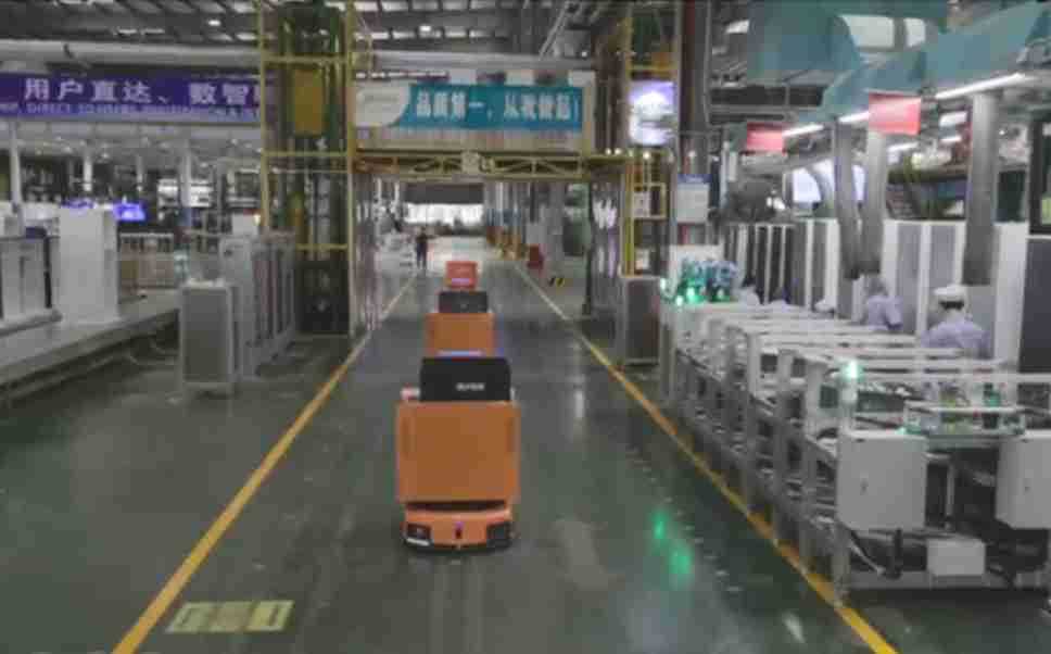 为车载冰箱物流配送打造的智能解决方案,,包含产中物流通过潜伏举升AMR搬运至线边,,产后成品物流智能仓储,,流程包含产中物流智能齐套入库,,线边安灯叫料AMR智能配送至线边,,,成品入库、、出库,,,通过无人堆高车机器人,,智能仓储管理替代人工作业管理,,,实现更高存储、、、更高效率、、、、更具柔性化的解决方案。。